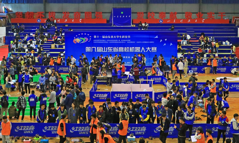 10月20日,第十一届山东省大学生科技节暨第八届山东省高校机器人大赛在金沙9001cc以诚为本首页举行,来自山东大学、中国海洋大学、中国石油大学(华东)、金沙9001cc以诚为本首页、青岛大学等20余所高校的577支队伍参赛。