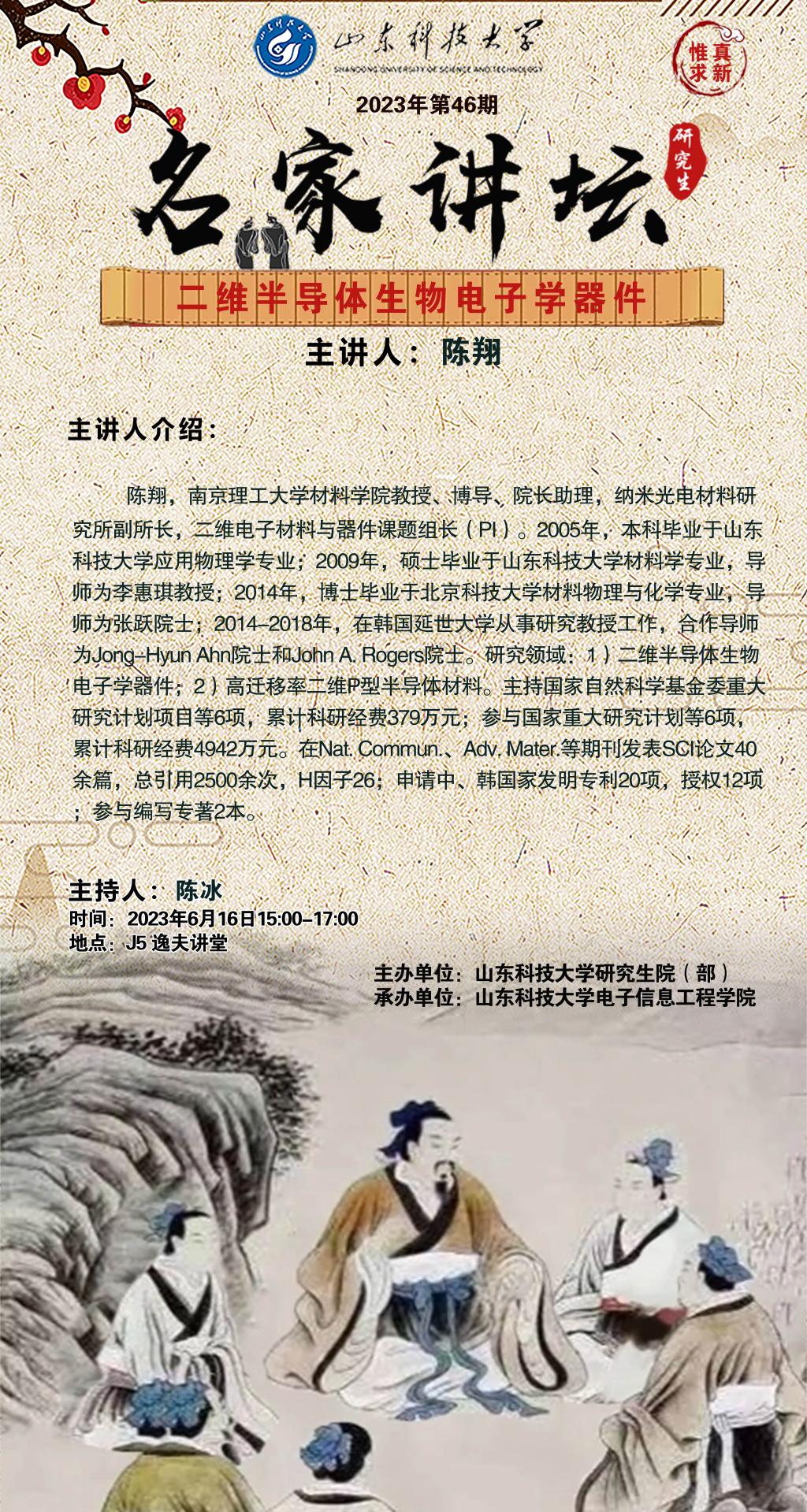 “名家讲坛”2023年第46期:二维半导体生物电子学器件(总847期)