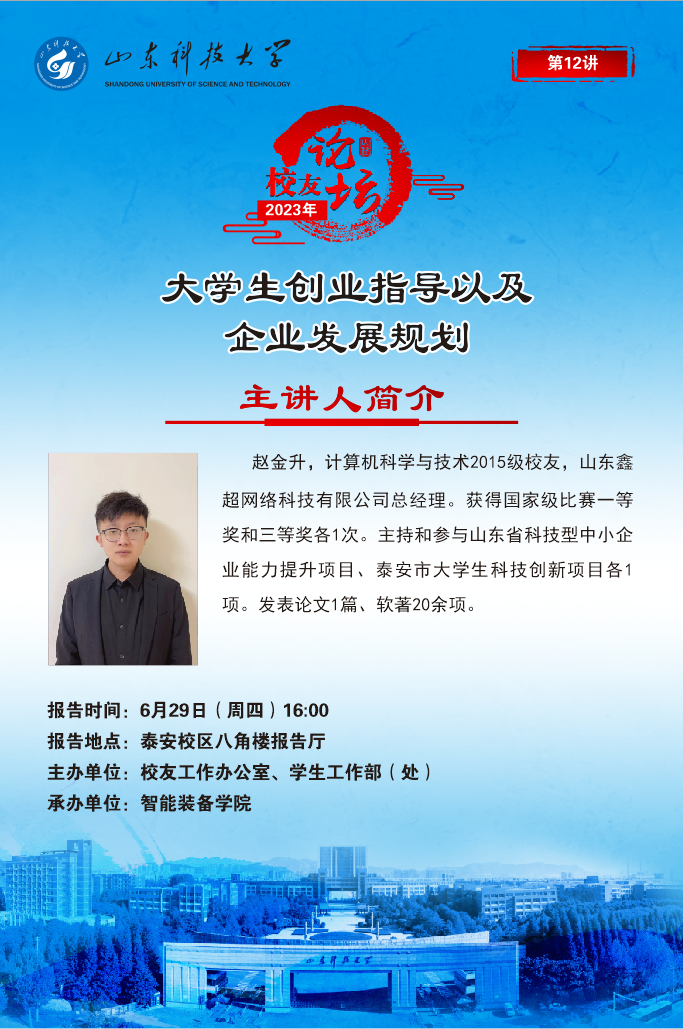 “校友论坛”2023年第12讲:大学生创业指导以及企业发展规划