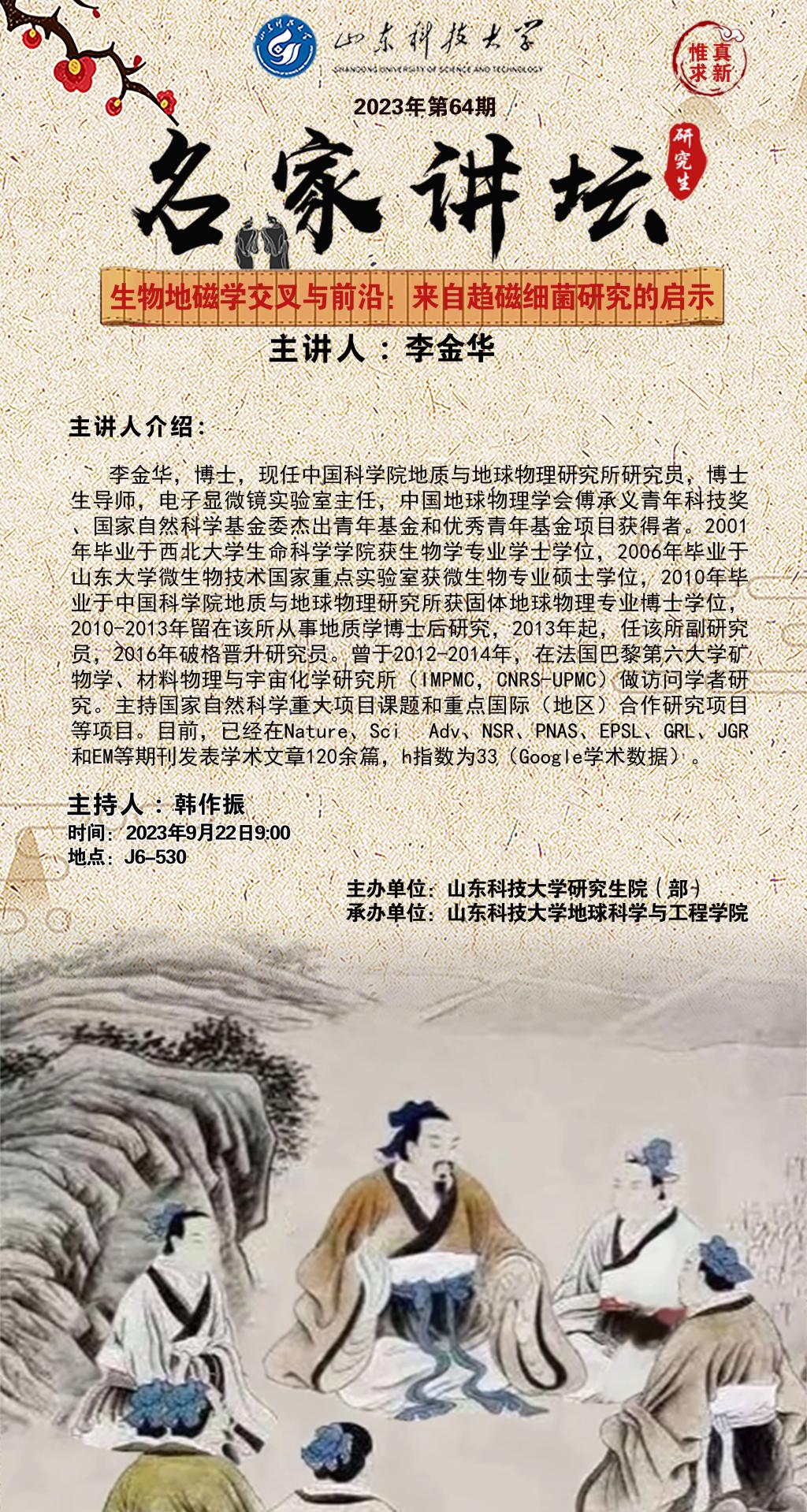 “名家讲坛”2023年第64期:生物地磁学交叉于前沿:来自趋磁细菌研究的启示(总865期)